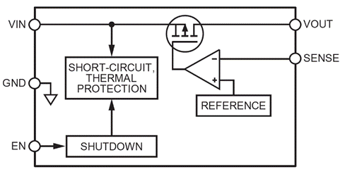 固定輸出電壓:1.5V、1.8 V、2.5 V、3.3 V 和 5.0 V
