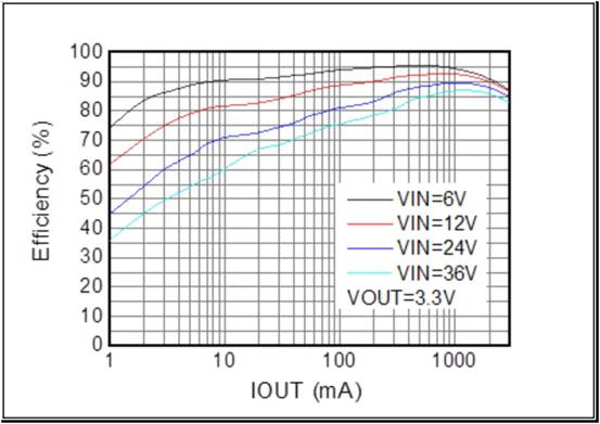 Vin=12V, Vout=3.3V,I out=0.3A~3A 時 VPP<200mV