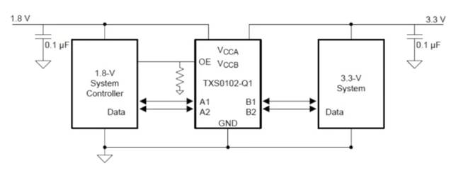 用三極管轉換的優(yōu)點是電路簡單,成本低,也有缺點,通訊速度受三極管的開關速度限制,通訊速度過低的時候還好。如果需要高速通訊的時候,就需要使用專門的高速電平轉換芯片啦,例如TI的TXS0102DCUR,可以同時轉換2路電平,在推挽模式下,轉換速率可高達24Mbps。當然,不同的轉換通道或轉換速率,都有專門芯片可以使用。