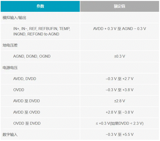 AD7794 Σ-Δ型24位ADC是另一個(gè)很好的例子。表3摘自AD7794 (Rev. D)數(shù)據(jù)手冊的“絕對最大額定值”部分。