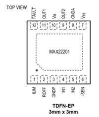 該器件采用小型TDFN12 3mm x 3mm封裝。MAX22201/2/7具有小尺寸封裝、高效率并集成準(zhǔn)確的電流檢測功能,因此非常適合空間和功耗敏感型應(yīng)用,比如有刷直流電機驅(qū)動、鎖閉閥和電磁閥以及單相步進(jìn)電機驅(qū)動。
