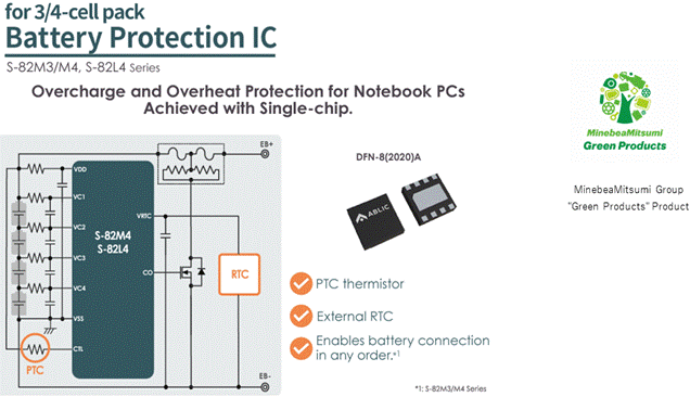 美蓓亞三美株式會(huì)社(MinebeaMitsumi Inc.) 旗下的艾普凌科有限公司(總裁:田中誠(chéng)司,總部地址:東京都港區(qū),下稱“ABLIC”)今天推出針對(duì)筆記本電腦的二次保護(hù)IC「S-82M3/M4系列」、「S-82L4系列」。