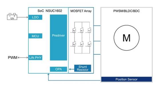 作為國內(nèi)領先的汽車芯片供應商,納芯微繼2023年初國內(nèi)首發(fā)車用小電機驅(qū)動SoC NSUC1610后,今日正式宣布推出高集成度嵌入式電機控制IC NSUC1602。與集成了LIN和MOS功率級的單芯片NSUC1610相比,NSUC1602集成式SoC支持外置獨立功率MOSFET的設計,這一創(chuàng)新方案能夠輕松應對更大電流需求的場景。