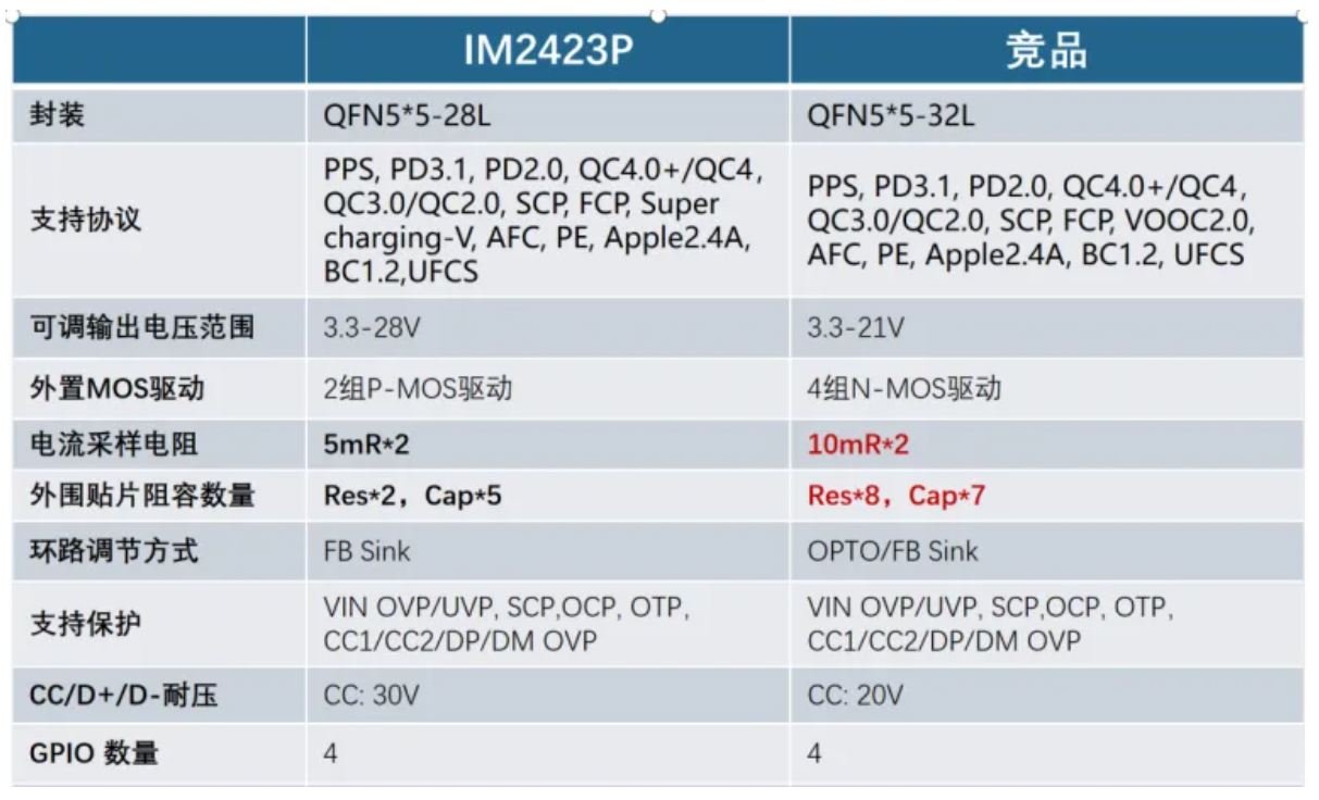 IM2423P與競品核心參數(shù)及BOM對比