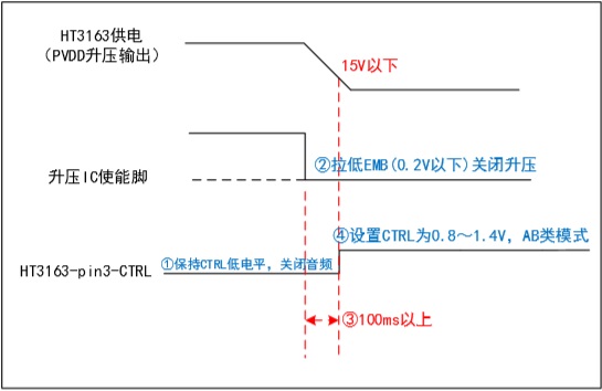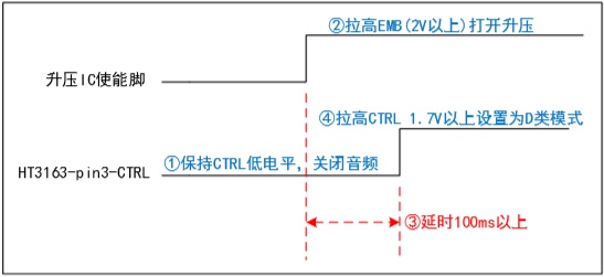HT3163單聲道功放芯片AB類/D類切換-CTRL管腳時(shí)序圖