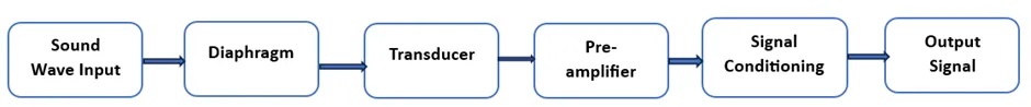 從核心角度來(lái)說(shuō),麥克風(fēng)傳感器是一種換能器:一種將能量從一種形式轉(zhuǎn)換為另一種形式的器件。在這種情況下,能量轉(zhuǎn)換是從聲能(聲波)轉(zhuǎn)換為電能(電壓)。當(dāng)聲波擊中麥克風(fēng)的振膜時(shí),會(huì)使其振動(dòng)。這些振動(dòng)隨后被轉(zhuǎn)換為反映聲波幅度和頻率的電信號(hào)。