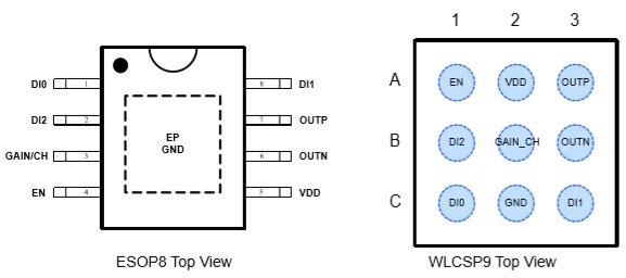 該產(chǎn)品提供WLCSP9和ESOP8封裝。