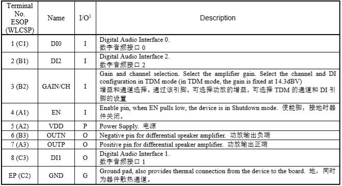 - I2S (輸出左、右或左/2+右/2可選擇), 16bit, 24bit 或 32 bit; TDM 輸入,16bit或32bit