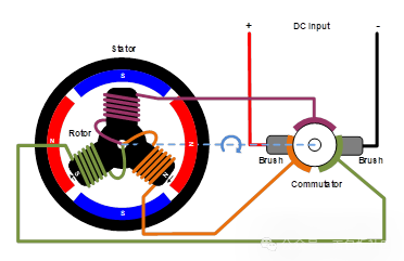 常用的直流電機有兩種:有刷電機和無刷電機(或稱BLDC電機)。顧名思義,有刷直流電機帶有電刷,電刷可以使電機換向并旋轉(zhuǎn);而無刷電機則用電子控制取代了機械換向功能。