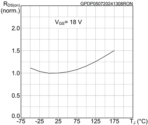 圖3: SCT011HU75G3AG 的導(dǎo)通電阻對(duì)溫度歸一化曲線
