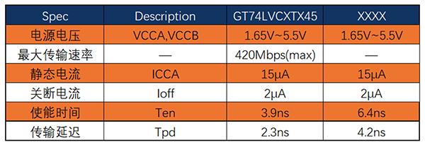 GT74LVCXTX45系列包括一路,二路,四路,八路和十六路收發(fā)器,是具有可配置電平轉(zhuǎn)換的雙電源總線收發(fā)器。最大傳輸速率可達(dá)到420Mbps,滿足高速數(shù)據(jù)傳輸要求。該收發(fā)器使用兩個(gè)獨(dú)立的電源軌,VCCA和VCCB的工作電壓范圍為1.65V至5.5V,支持寬電壓輸入。A端口參考VCCA,B端口參考VCCB,可以在1.8V、2.5V、3.3V和5.5V電壓節(jié)點(diǎn)之間實(shí)現(xiàn)通用低壓雙向轉(zhuǎn)換。具備VCC隔離特性,當(dāng)任一VCC輸入端處于接地狀態(tài),則所有輸入端均處于高阻抗?fàn)顟B(tài)。A端口和B端口的輸入電路始終處于激活狀態(tài),并具有邏輯高電平或邏輯低電平,以防止出現(xiàn)過多的ICC和ICCZ。GT74LVCXTX45的控制引腳由VCCA供電。該芯片的工作范圍為-40℃~125℃。
