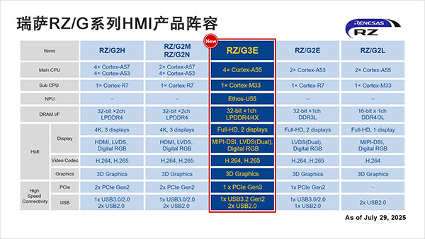 Daryl Khoo, Vice President of Embedded Processing at Renesas表示:“RZ/G3E在RZ/G系列成熟性能的基礎(chǔ)上,增加了NPU以支持AI處理。通過使用與我們最近發(fā)布的RA8P1微控制器相同的Ethos™-U55 NPU,我們?yōu)锳I開發(fā)提供了可擴(kuò)展的路徑。這些增強(qiáng)功能憑借強(qiáng)大的AI能力,滿足下一代HMI應(yīng)用在視覺、語音和實(shí)時(shí)分析方面的需求!