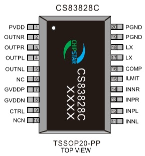 CS83828C內(nèi)置了過流保護,短路保護和過熱保護,有效的保護芯片在異常的工作條件下不被損壞。