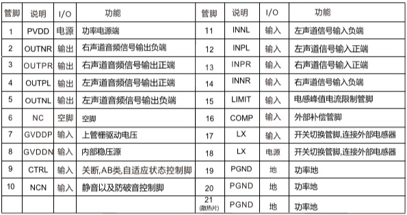 內(nèi)置BOOST模塊升壓至9.5V,集成AB類D類兩種模式