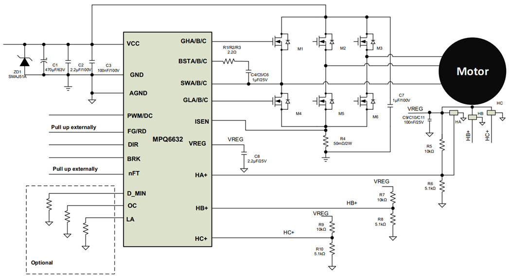ACM6732是一款三相無刷直流電機(jī)驅(qū)動(dòng)芯片,內(nèi)部集成無感三相無刷電機(jī)驅(qū)動(dòng)算法、相電流檢測(cè)電流電路、柵極驅(qū)動(dòng)電路以及功率MOS 管. 支持最大2.4A的相電流. ACM6732 的高集成度以及精簡(jiǎn)外圍特別適用于高功率密度、小尺寸、靜音要求高的三相無刷電機(jī)驅(qū)動(dòng)器應(yīng)用場(chǎng)