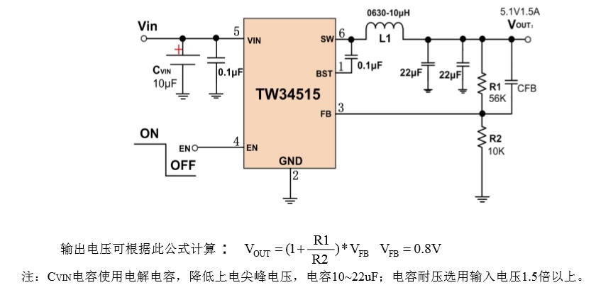 TW34515 4.7V-45V寬電壓輸入、1.5A小封裝同步降壓芯片產(chǎn)品介紹
