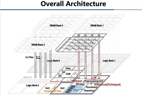 針對(duì)諸多行業(yè)挑戰(zhàn),2024年計(jì)算機(jī)體系結(jié)構(gòu)領(lǐng)域頂會(huì)ISCA上,清華大學(xué)集成電路學(xué)院尹首一教授帶領(lǐng)團(tuán)隊(duì),發(fā)表了題為《Exploiting Similarity Opportunities of Emerging Vision AI Models on Hybrid Bonding Architecture》的論文,首次通過(guò)混合鍵合技術(shù)實(shí)現(xiàn)邏輯芯片與DRAM的3D可重構(gòu),構(gòu)建了具有超高帶寬的三維DRAM存算一體架構(gòu),從而提升AI芯片算力能效和面積效率。