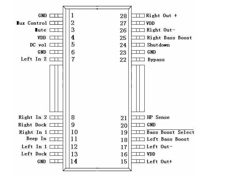 2X4.5W/2.7V-5.5V(內(nèi)置電荷泵無(wú)電感升壓模塊)/4Ω |