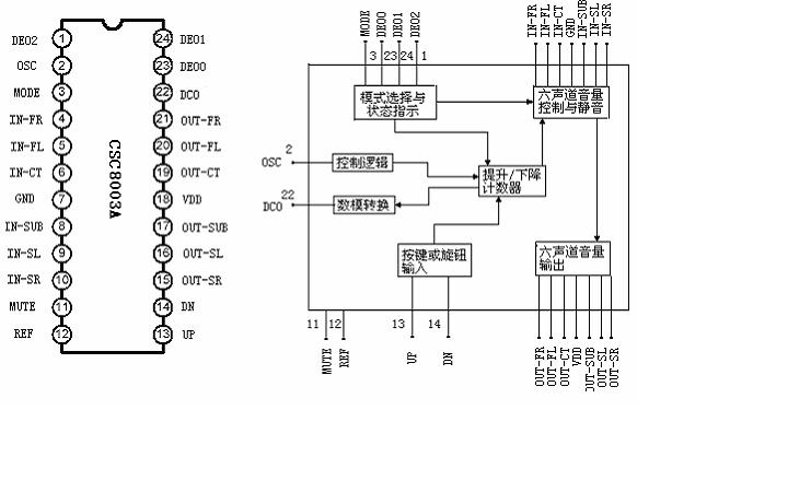 CSC8003A 是六聲道音量控制器,利用CMOS 工藝,采用按鍵控制,為音頻設(shè)備等音量控制電子化