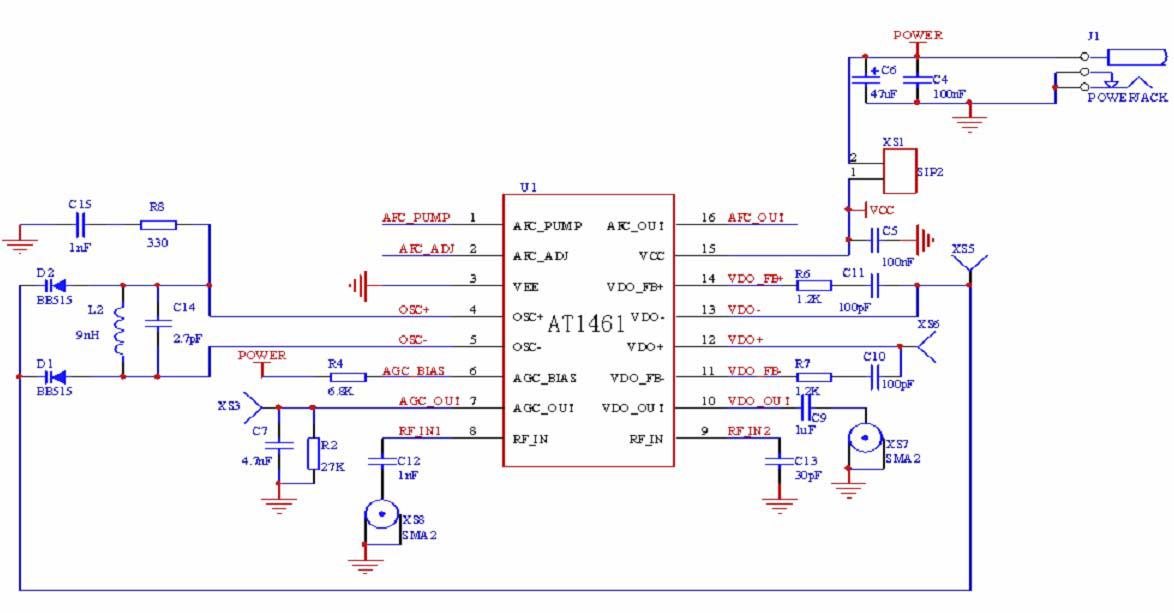 AT1461 是一款寬帶PLL 的 FM 解調(diào)芯片,主要應(yīng)用于模擬衛(wèi)星電視信號(hào)解調(diào)。2.4Ghz 衛(wèi)星信號(hào)經(jīng)過下變頻電路到479.5MHZ 中頻,AT1461 實(shí)現(xiàn)中頻段的解調(diào),得到基帶信號(hào)(如PAL 制式)供后級(jí)電路。采用SOP-16封裝。