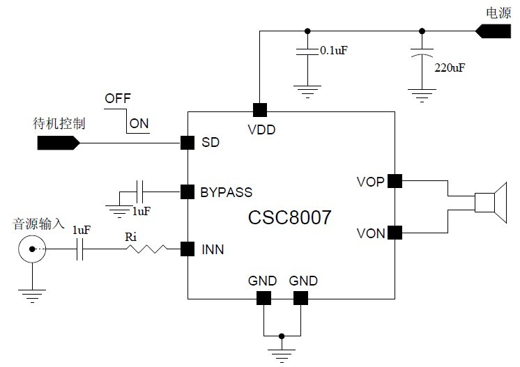 固定21倍增益,防破音,AB/D切換,電源自動增益調(diào)節(jié),功率限制,多階電源自適應(yīng)功能 內(nèi)置BOOST升壓模塊,恒定10W輸出功率R類單聲道音頻功率放大器 |