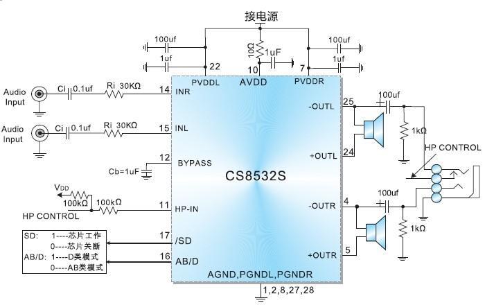 擴(kuò)頻模式,靜音功能,三種防破音模式,AB/D切換,內(nèi)置升壓,18W單聲道音頻功放 |