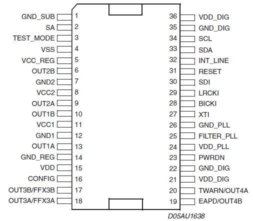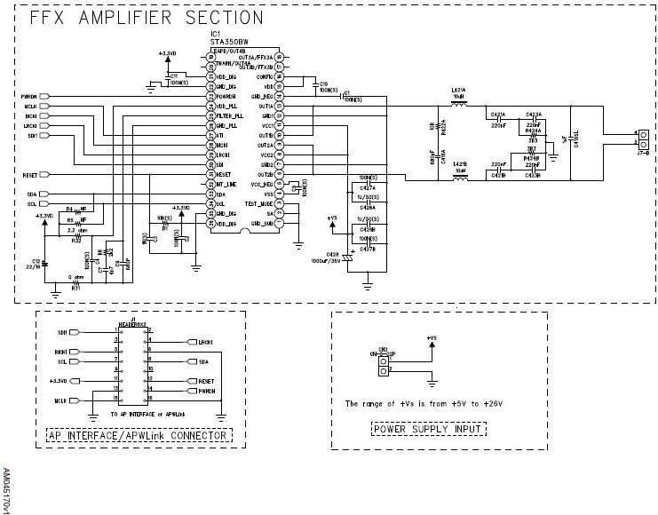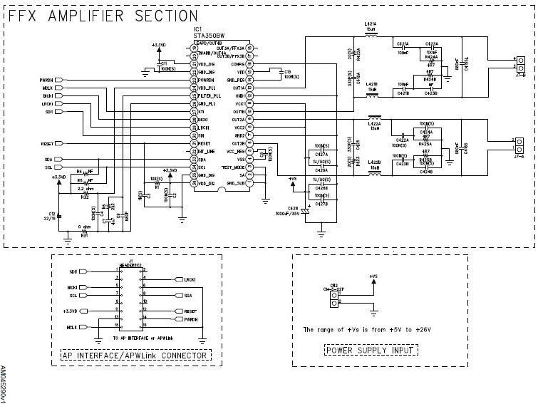 STA350BW的功率級采用意法半導體獨有的FFXTM技術,實現(xiàn)全數(shù)字音頻流不間斷傳輸至揚聲器。新一代產品為客戶提供四個運行時輸出配置選擇,可支持多種功率放大輸出模式,包括2.0、2.1或1.0聲道、或2.0聲道加1個外部超低音揚聲器PWM輸出。
