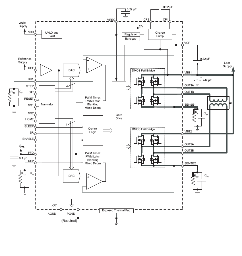 具有片上1/32微步進(jìn)分度器的3A雙極步進(jìn)電機(jī)驅(qū)動(dòng)IC |