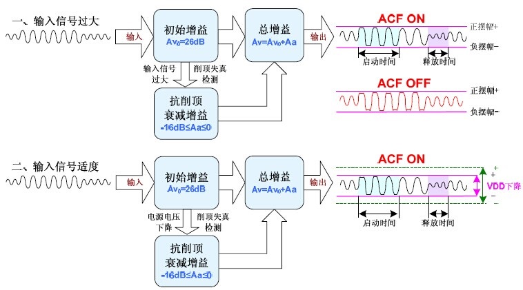 擴(kuò)頻模式,靜音功能,三種防破音模式,AB/D切換,內(nèi)置升壓,18W單聲道音頻功放 |