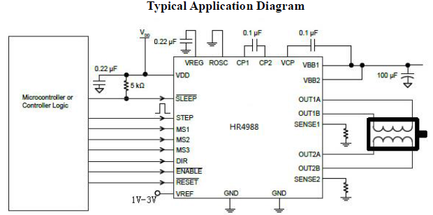 HR3979是一種新近開發(fā)出來、專門用于雙極步進電機的微步進電機驅(qū)動集成電路,能驅(qū)動馬達以全、1/2、1/4及1/16步進操作,其內(nèi)部集成了步進和直接譯碼接口、正反轉(zhuǎn)控制電路、雙H橋驅(qū)動,單路輸出額定值達到35V、±2.5A。 |