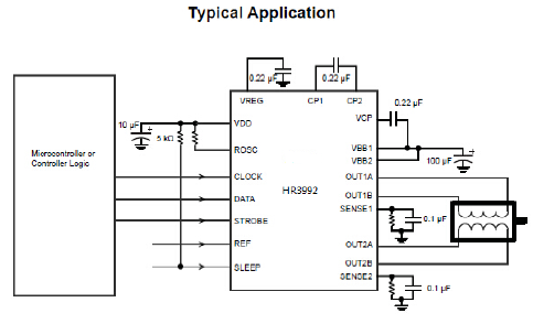 HR3967是一種新近開發(fā)出來、專門用于雙極步進(jìn)電機(jī)的微步進(jìn)電機(jī)驅(qū)動(dòng)集成電路,能以全、1/2、1/4及1/8微步細(xì)分驅(qū)動(dòng)馬達(dá),輸出額定值能達(dá)到30V、±750mA 。 |