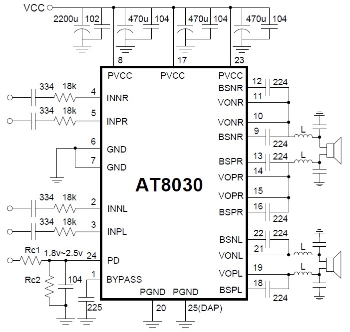 可使用單面PCB、免濾波、30W單聲道D類音頻功放IC,管腳兼容CS8622 |