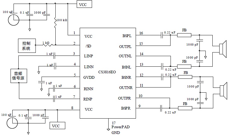 CS3816(無電感15W立體聲D類音頻功放IC) |