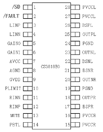 CS3818是一款15W(每聲道)立體聲高效D 類音頻功率放大電路。先進的EMI抑制技術使得在輸出端口采用廉價的鐵氧體磁珠濾波器就可以滿足EMC 要求。內(nèi)部包括一個功率可調(diào)限制器和直流檢測電路來對揚聲器進行保護。功率可調(diào)限制器允許用戶設定一個比電源電壓低的虛擬電壓來限制流過揚聲器的總電流,直流檢測電路在輸入電容損壞或者輸入短路時關斷輸出級。管教兼容TPA3140D2/TPA3144D2