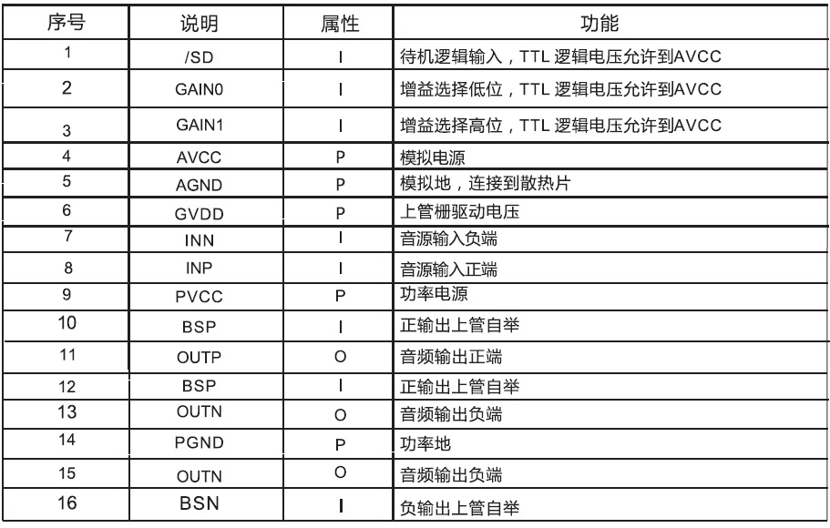 擴(kuò)頻功能、低空載電流、40倍增益、免濾波、2X23W/33W(PBTL) D類音頻放大器 |