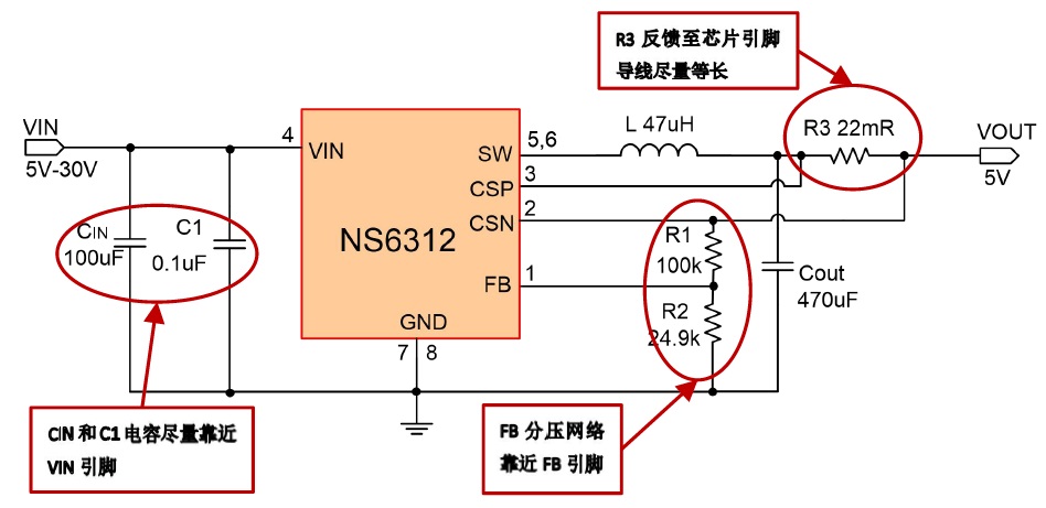 產(chǎn)品功能: NS6312是支持高電壓輸入的同步降壓電源管理芯片,在4~30V的寬輸入電壓范圍內(nèi)可實(shí)現(xiàn)2.4A的連續(xù)電流輸出