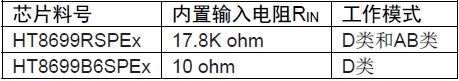 5.5W/2.8V-5.5V(內(nèi)置電荷泵無電感升壓模塊)/4Ω |