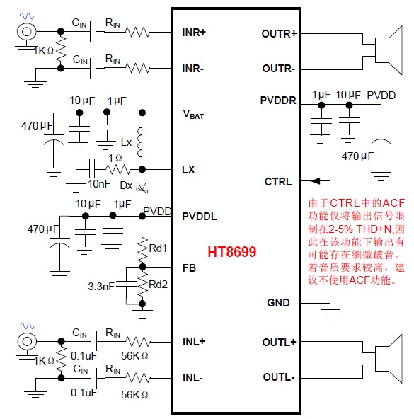 2X8.5W/2.7V-5.5V(內(nèi)置自適應升壓模塊)/4Ω |
