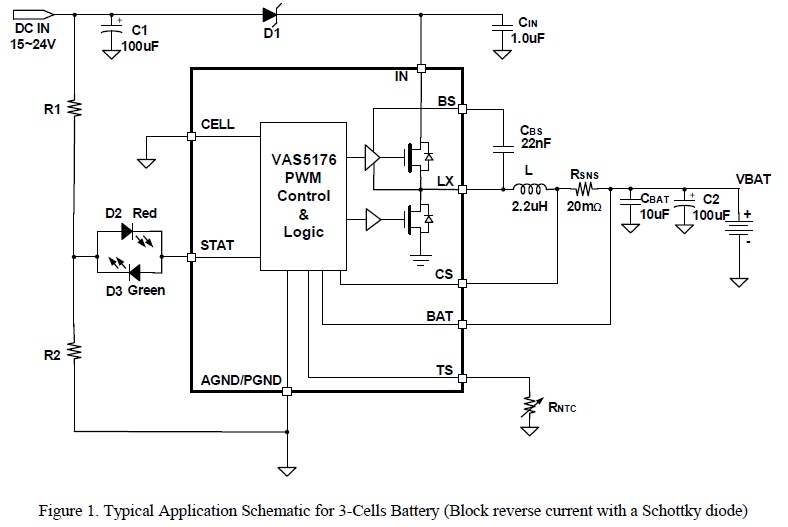 VAS5176 是一款8.5V-24V 輸入,高度集成的開(kāi)關(guān)型鋰離子/聚合物電池充電管理芯片, 以高精度調(diào)節(jié)2A充電電流,和電池電壓。 |