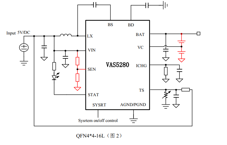 VAS5280(5V USB輸入、同步升壓兩節(jié)鋰電充電管理IC) |