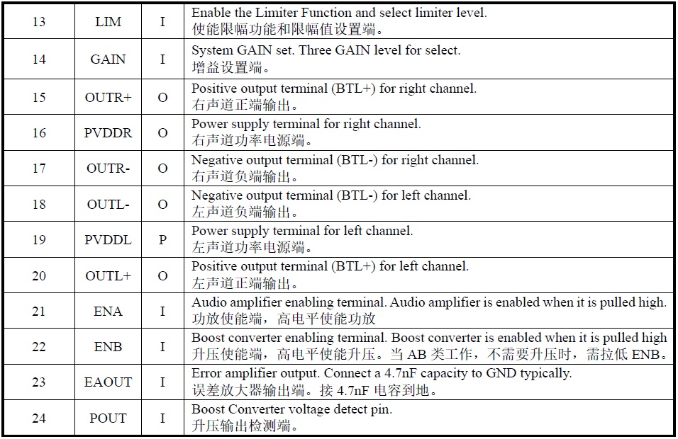18W/3.0V-12V(內置升壓至12.3V)/4Ω |