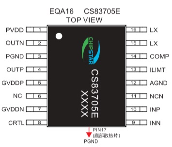 CS83705E提供了纖小的的EQA16L封裝形式供客戶選擇,封裝尺寸和ESOP8一致 ,其額定的工作溫度范圍為-40℃至85℃。