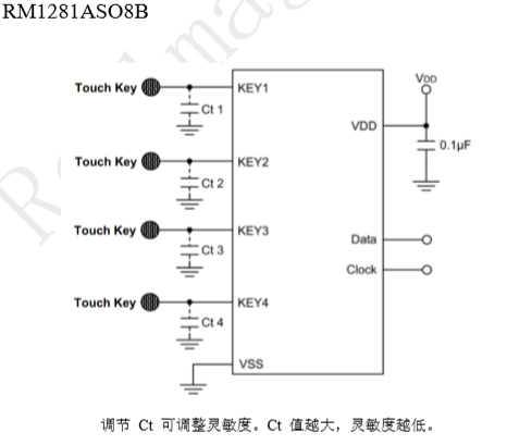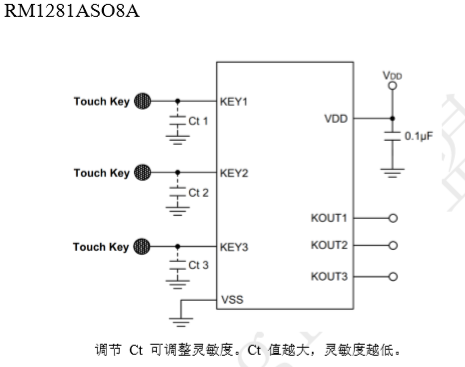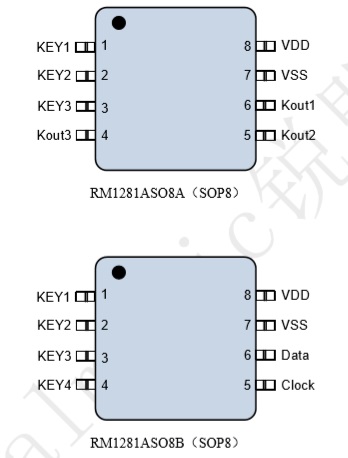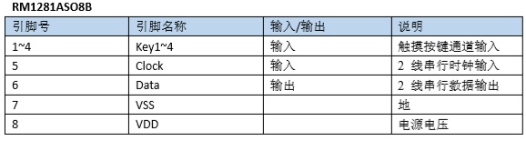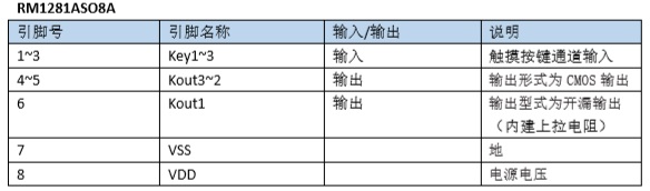 RM1281A系列芯片具有3到4個(gè)觸摸 按鍵檢測(cè),可用來(lái)檢測(cè)外部觸摸按鍵上人 手的觸摸動(dòng)作。該系列的芯片具有較高的 集成度,僅需較少的外部組件便可實(shí)現(xiàn)觸 摸按鍵的檢測(cè)。 |