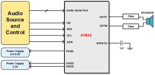 HT513(I2S輸入2.8W單聲道D類音頻功放IC) |