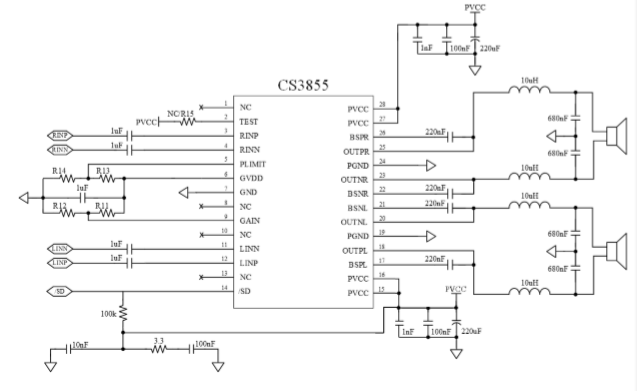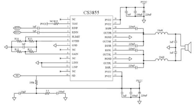 CS3855EO 是一款典型輸出功率為55W立體聲的D類音頻功率放大電路,適用于拉桿音箱、高級桌面音響等場合。