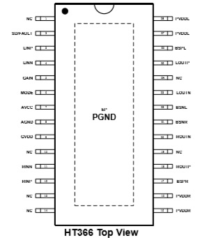 HT366(具有防破音功能的2×20W立體聲D類音頻功放IC) |