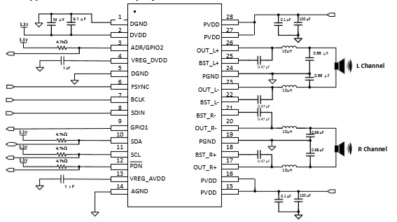 3.1W小型便捷低功耗I2S輸入單聲道D類音頻功率放大器 |