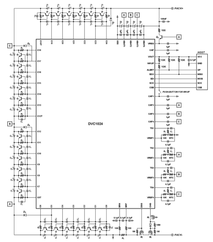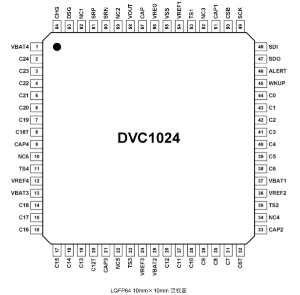 DVC1024是一款采用車規(guī)級高壓BCD工藝設(shè)計(jì)的12-24節(jié)鋰電池組監(jiān)控芯片,通過四線式SPI接口與上位機(jī)進(jìn)行通信,形成一套完整的電池組管理系統(tǒng)(BMS)。