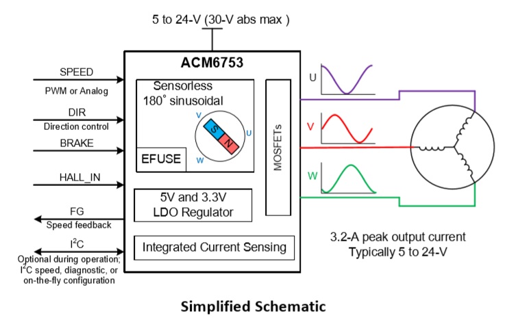 三相180˚ 正弦/方波, 無(wú)感或者外置霍爾的直流無(wú)刷電機(jī)驅(qū)動(dòng)器 |