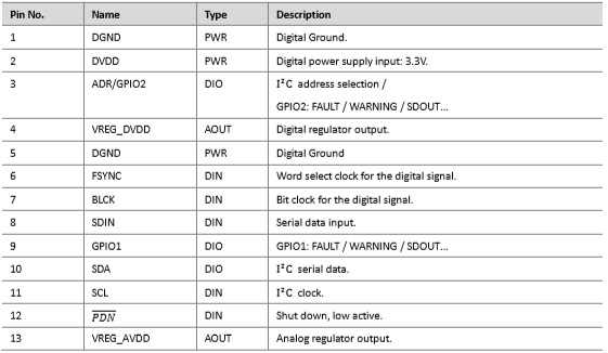 - THD+N ≤ 0.04% :1W, 1kHz, PVDD = 12V